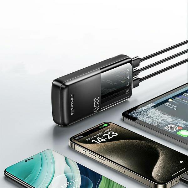 The AWEI P13K powerbank is equipped with a large digital display that allows you to monitor the current battery level. This is a useful tool that allows you to keep track of your energy status and manage your charging, giving you control over power availability even on the go. The digital display is not just about functionality, but also a modern design that adds elegance to the device.
